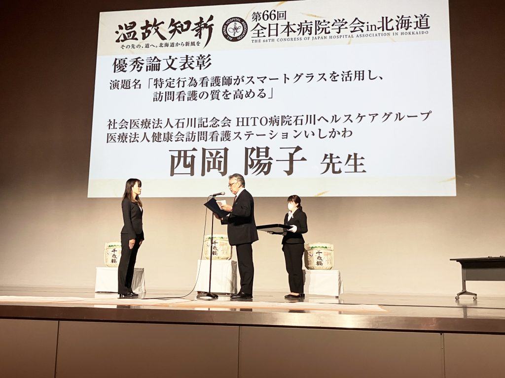 2025年10月11日(土)~12日(日)に、北海道札幌にて行われた、第66回全日本病院学会に参加し、訪問看護ステーションいしかわ 特定行為看護師(※) 西岡陽子さんが優秀賞を受賞しました。