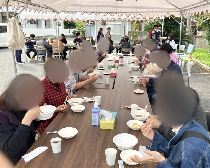 大鍋でじっくり煮込んだ芋炊きは、里芋や季節の野菜の旨みがたっぷり詰まった一品。「お出汁がとても美味しいね」「みんなで食べると、さらに美味しい!」と、参加者の皆さんから嬉しい声をいただきました。