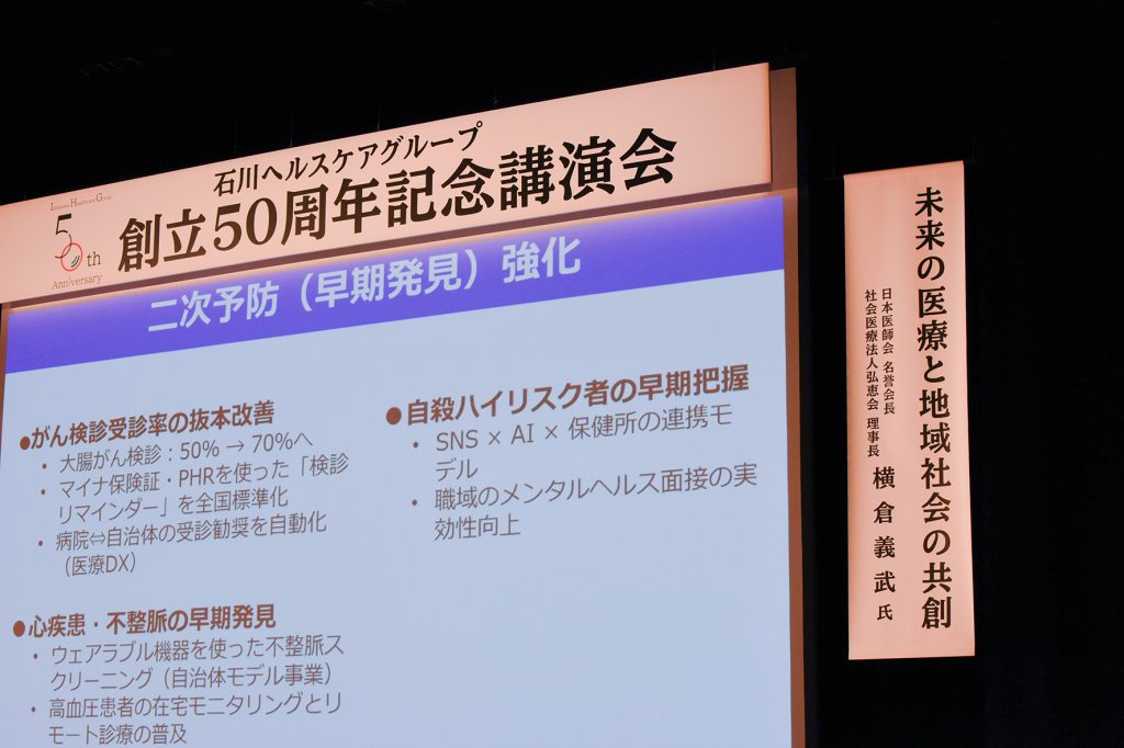 12月6日(土)、しこちゅ~ホールにて石川ヘルスケアグループ創立50周年記念講演会を開催いたしました。当日は330名以上の皆さまにご来場いただき、心より御礼申し上げます。