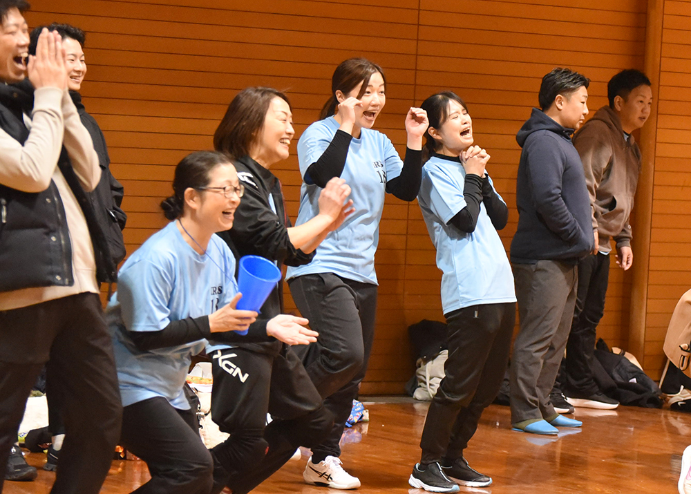 さらに今年は、健康会の利用者さん12名にもご来場いただき、職員と利用者さんが一緒に声援を送り、楽しむ姿が見られました。選手たちは全力でプレーし、観客も一体となって応援するなど、会場は熱気と笑顔にあふれ、決勝戦では点が決まる度に歓声が上がり、喜びを分かち合う光景が印象的でした。